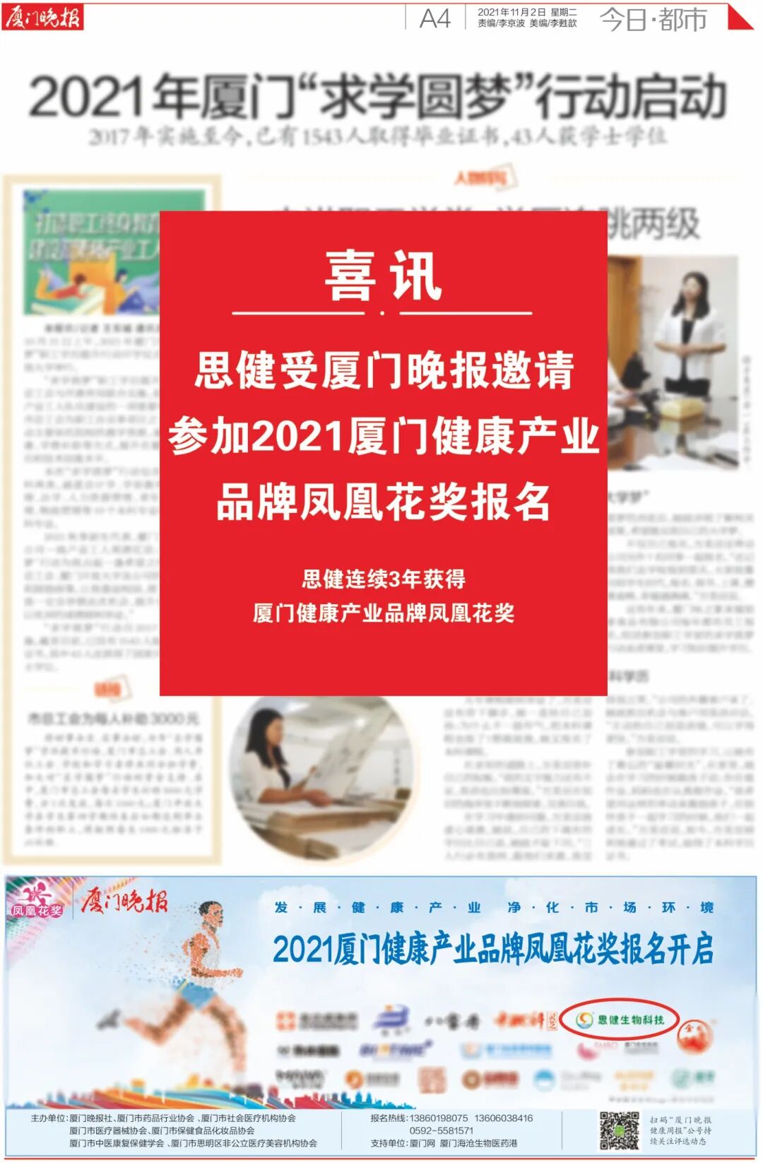 回首過往,思健品牌與廈門晚報(bào)結(jié)緣深厚:早在2021年,思健就受邀參與廈門健康產(chǎn)業(yè)品牌鳳凰花獎(jiǎng)評(píng)選,憑借卓越品質(zhì)與良好口碑,連續(xù)三年蟬聯(lián)此項(xiàng)殊榮,成為廈門健康產(chǎn)業(yè)中一張閃亮的名片。不僅如此,思健還積極踐行企業(yè)社會(huì)責(zé)任,熱心助力“2025新年心愿”公益行動(dòng),用愛心溫暖鷺島。